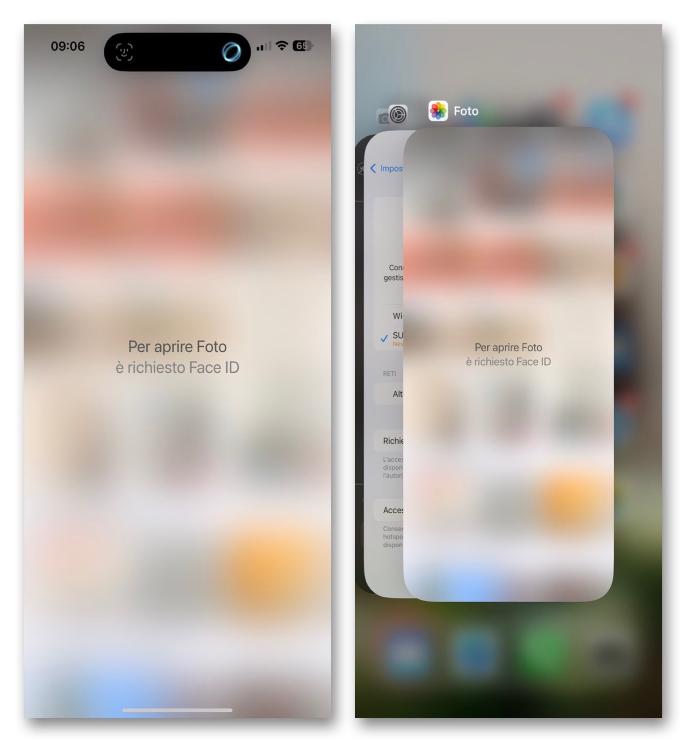 Per tutti gli altri invece l’interfaccia apparirà sfocata e al centro si leggerà la frase Per aprire NOMEAPP è richiesto Face ID.