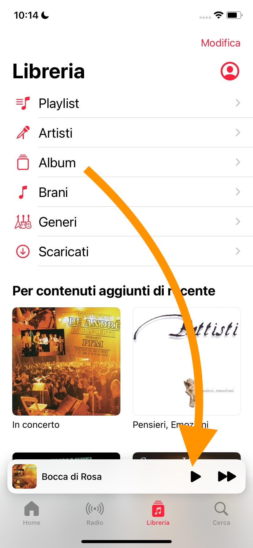 Per prima cosa dovete far partire la musica che volete lasciare in sottofondo. Per far questo: