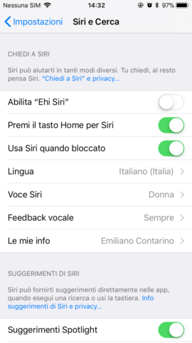 Spegnere Ehi Siri