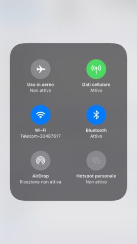 Disattivare WiFi, BT, connessione dati, AirDrop