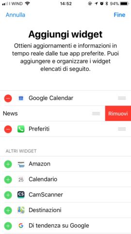Eliminare i widget