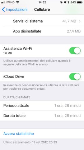 Per risparmiare ulteriormente batteria è possibile disattivare l’assistenza Wi-Fi. Per Farlo è sufficiente disattivare l’interruttore Assistenza Wi-Fi. Questa opzione, si trova su Impostazioni, Cellulare, verso il fondo della pagina. Se attiva, l’assistenza WiFi utilizza automaticamente la rete cellulare quando il segnale della rete Wi-Fi è scarso.