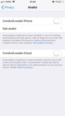Non condividere analisi iCloud ad Apple