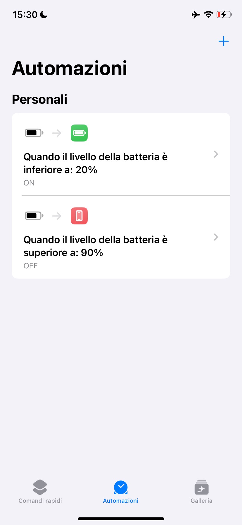 Potete anche creare una seconda automazione regolando il livello batteria sul 90% (o altro a piacere) e spuntando la casella Superiore a 90%, quindi selezionando il comando OFF per far sì che l’iPhone torni allo stato precedente quando è in ricarica e la batteria ha superato il 90%.