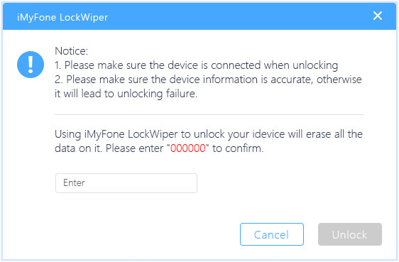 La procedura richiederà di confermare lo sblocco inserendo il PIN 000000. Questo serve soltanto per non effettuare uno sblocco accidentale: dopo aver cliccato Unlock saranno cancellati tutti i dati presenti sul dispositivo.