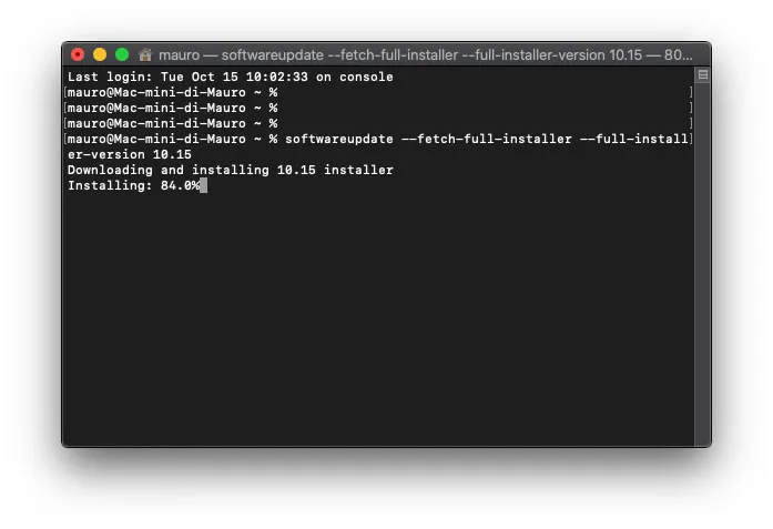 Per scaricare una copia completa del programma di installazione di macOS Catalina, basta copiare e incollare questo comando nel Terminale: