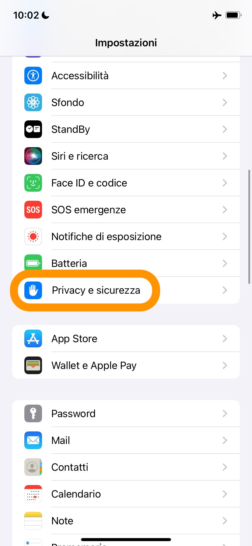 • Scorrete verso il basso e cliccate su Privacy e Sicurezza