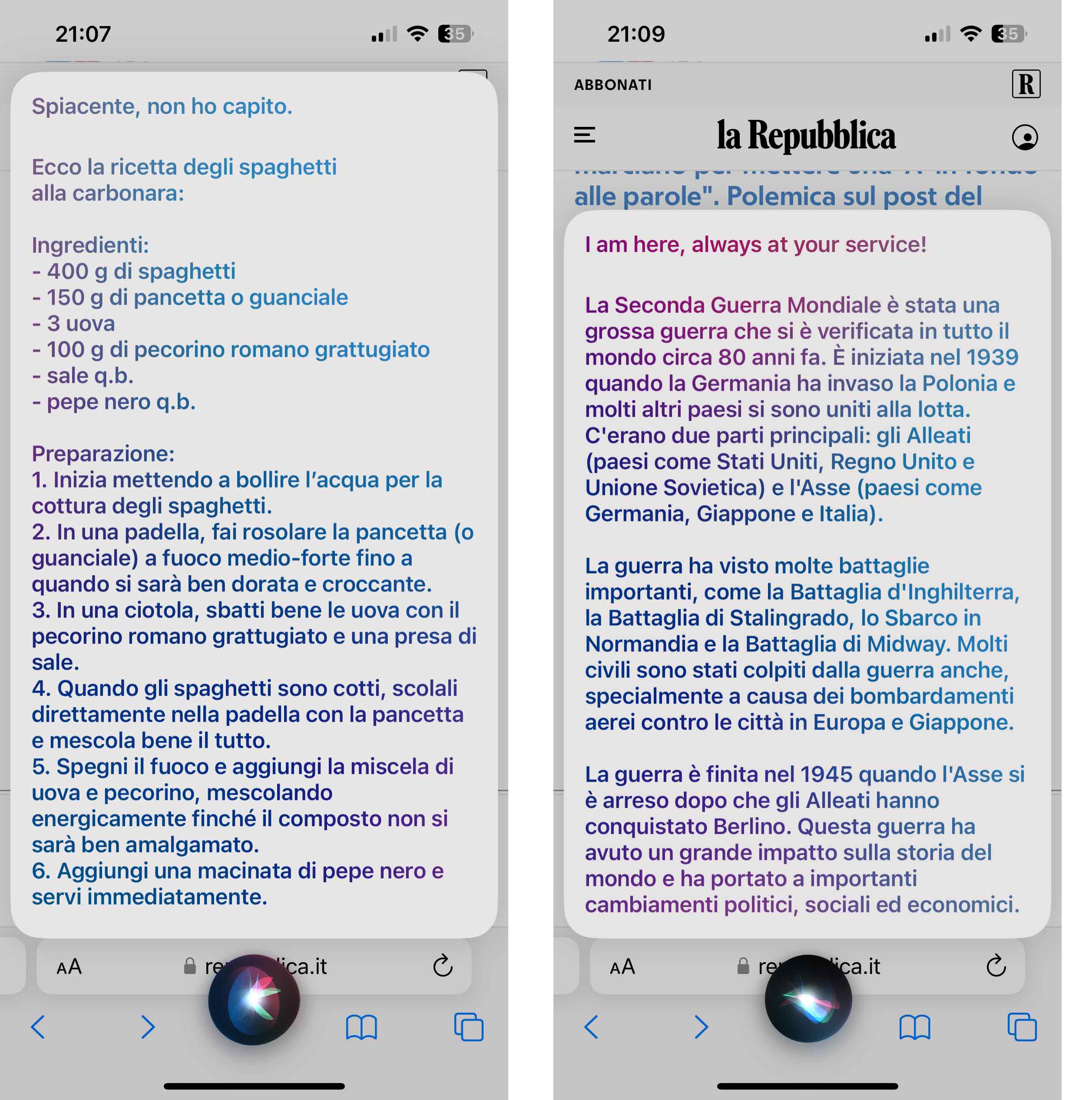 Siri, o meglio ChatGpt, risponderà con il messaggio in inglese “I’m here, always at your service” (questo messaggio può essere modificato e personalizzato a piacere, anche in italiano).
