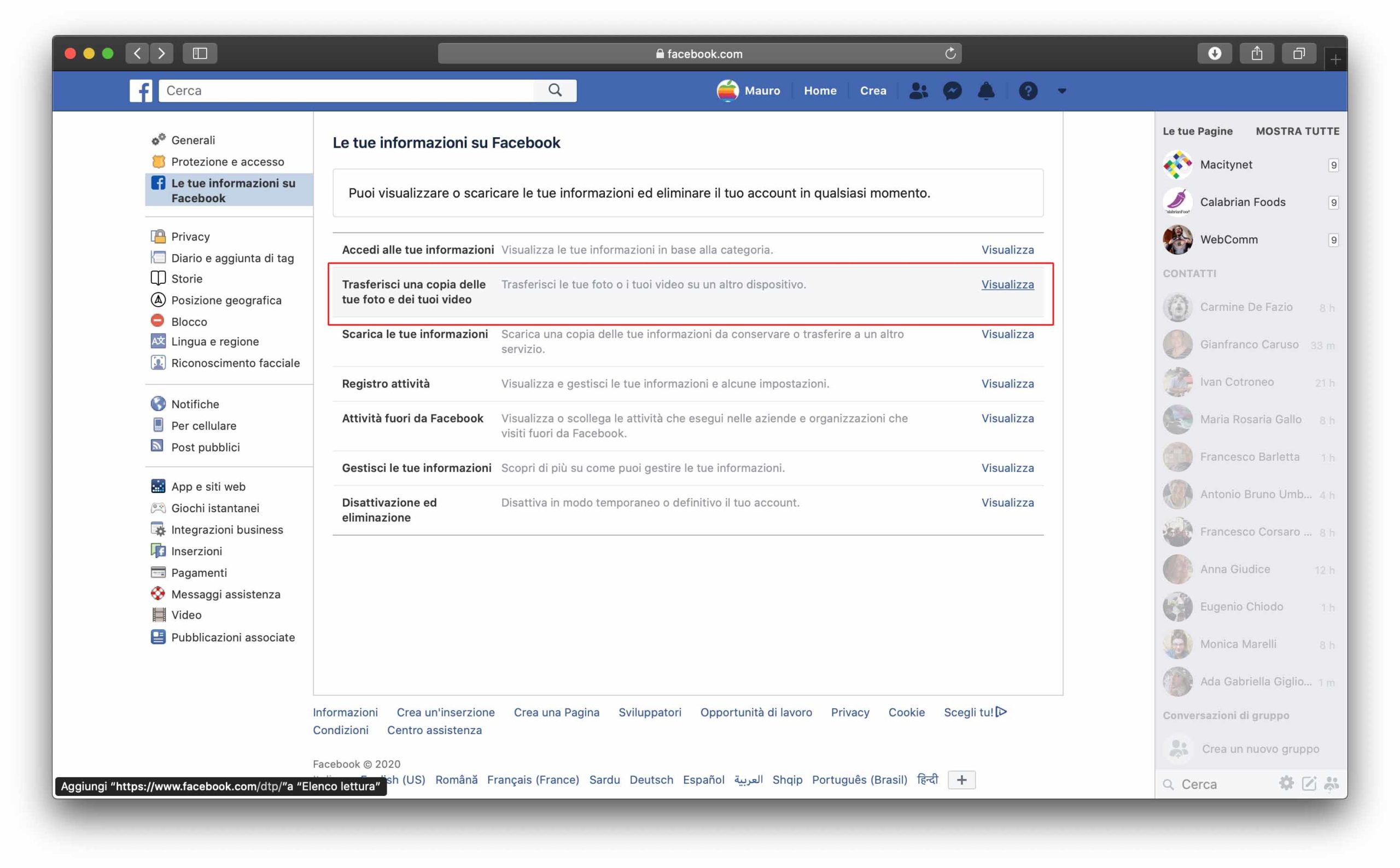 È possibile trasferire le foto da Facebook a Google Foto in modo semplice. Da un browser per computer basta andare nelle Impostazioni generali dell’account Facebook, sulla sinistra selezionare “Le tue informazioni Facebook” e poi fare click su “Visualizza” nella sezione “Trasferisci una copia delle tue foto e dei tuoi video”.
