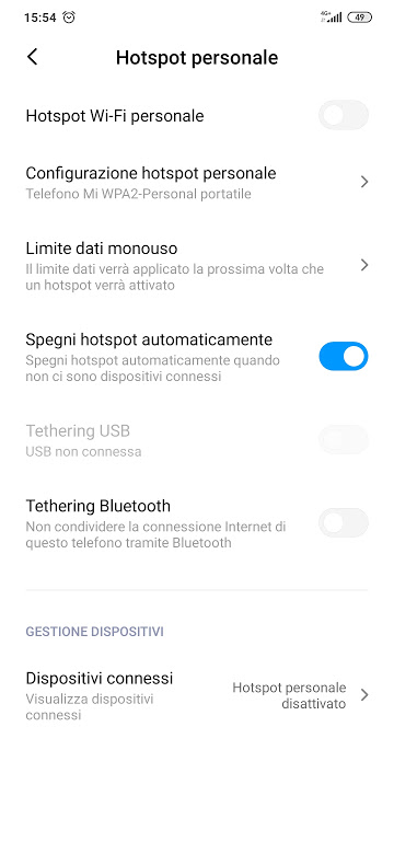 - attivare l’hotspot del telefono aprendo l’app Impostazioni;