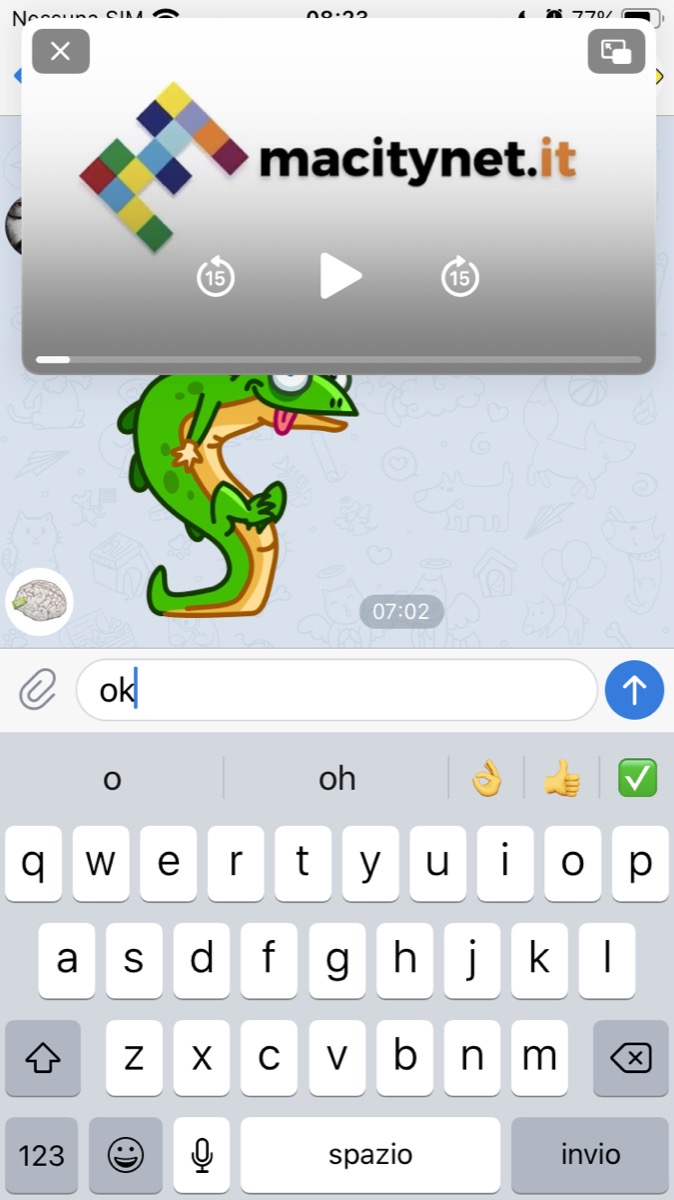 A questo punto potete usare l’iPhone come sempre, magari per rispondere ad un messaggio, effettuare una ricerca sul web o consultare un appunto preso in precedenza, pur avendo in sovrimpressione il rettangolo del video posizionato in un angolo dello schermo. Lo potete spostare a piacimento, anche più volte, semplicemente trascinandolo con il dito. Attraverso il gesto della pizzicata (pinch-to-zoom) potete aumentarne o diminuirne le dimensioni nei tre formati – piccolo, medio e grande – supportati. Non potete posizionarlo ovunque ma solo in uno dei quattro angoli dello schermo.
