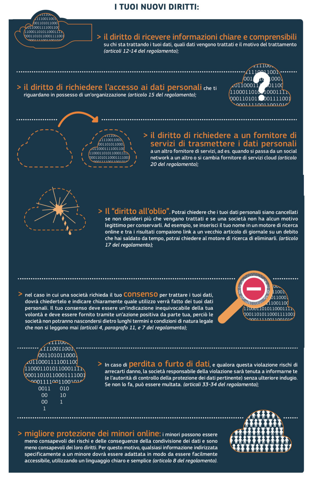 Quando navighiamo online per fare acquisti, presentare la dichiarazione dei redditi o connetterci ai social, d’ora in poi potremo stare più tranquilli su tutto ciò che accade alle informazioni personali forntie, perché il GDPR tutela i nostri diritti fondamentali, garantendo la possibilità di controllare come le società usano i nostri dati personali e imponendo loro di mettere in atto nuove procedure per proteggerli.