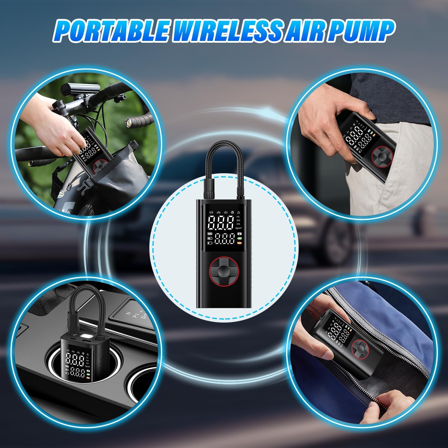 Questa mini pompa include 5 modalità di gonfiaggio preimpostate: bicicletta, moto, auto, palloni e modalità libera. Il sensore integrato garantisce una precisione fino a ±0,01 bar, con lettura chiara sul display digitale LCD. In modalità libera, è possibile impostare manualmente il valore desiderato tra 3 e 150 PSI, con spegnimento automatico al raggiungimento della pressione impostata, utile per evitare il sovragonfiaggio.