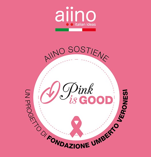 Acquistando una cover o un altro prodotto Aiino si sosterrà la ricerca contro il tumore al seno “Pink is good”. Questa campagna in rosa nel mese di ottobre, dedicato a livello mondiale alla prevenzione del tumore al seno, è un progetto della Fondazione Umberto Veronesi che si propone di finanziare borse di studio per medici e scienziati che si dedicano allo studio e alla cura di questa malattia.