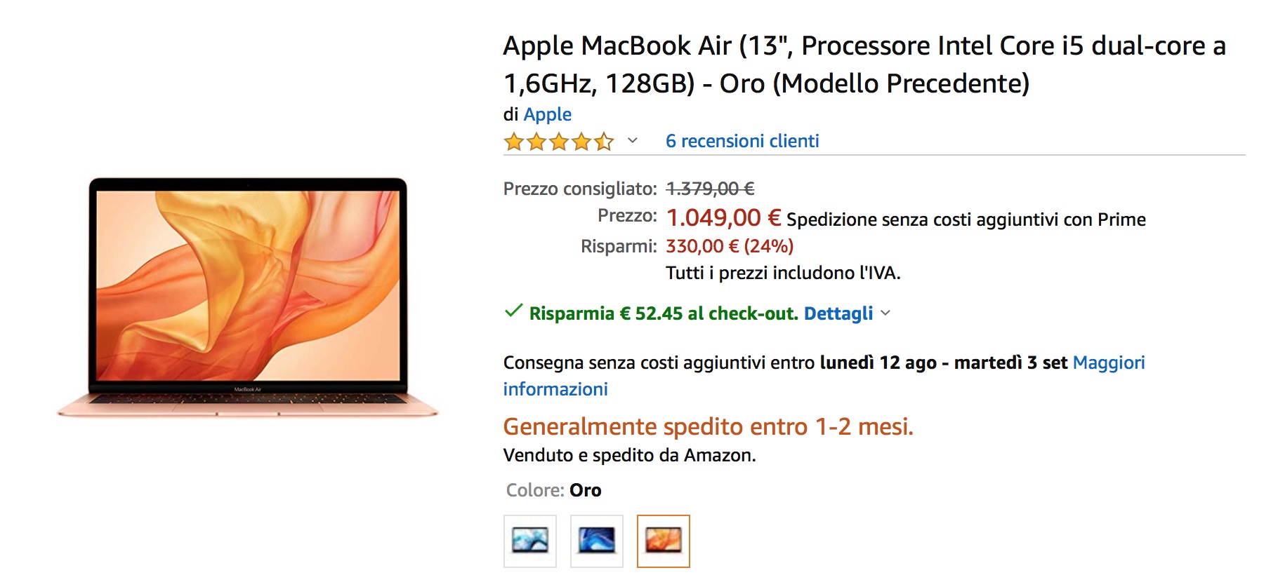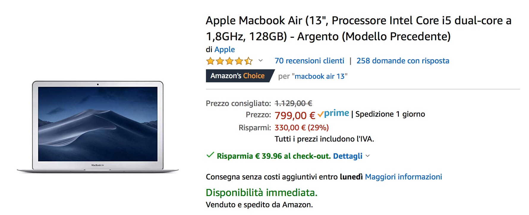 Se l’offerta di questa pagina non è più disponibile consultate la nostra sezione Offerte Apple su Amazon per verificare le ultimissime segnalazioni.