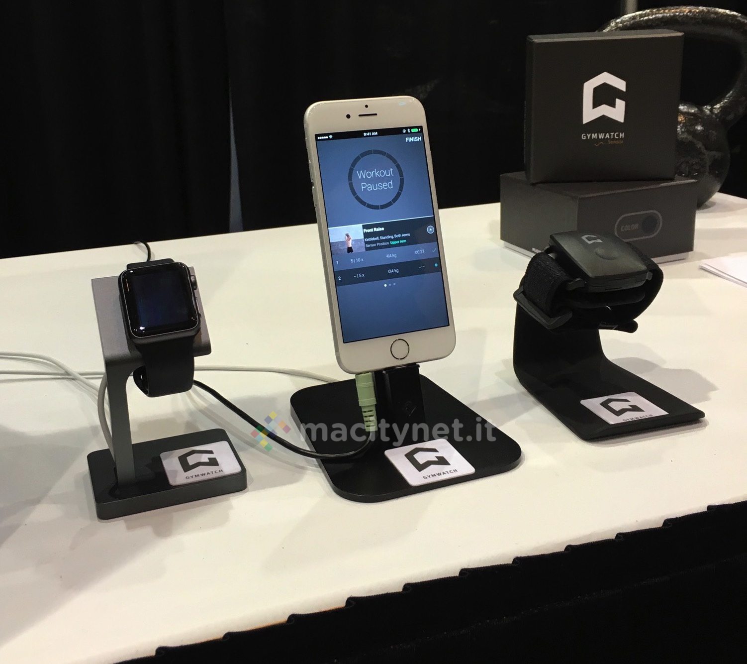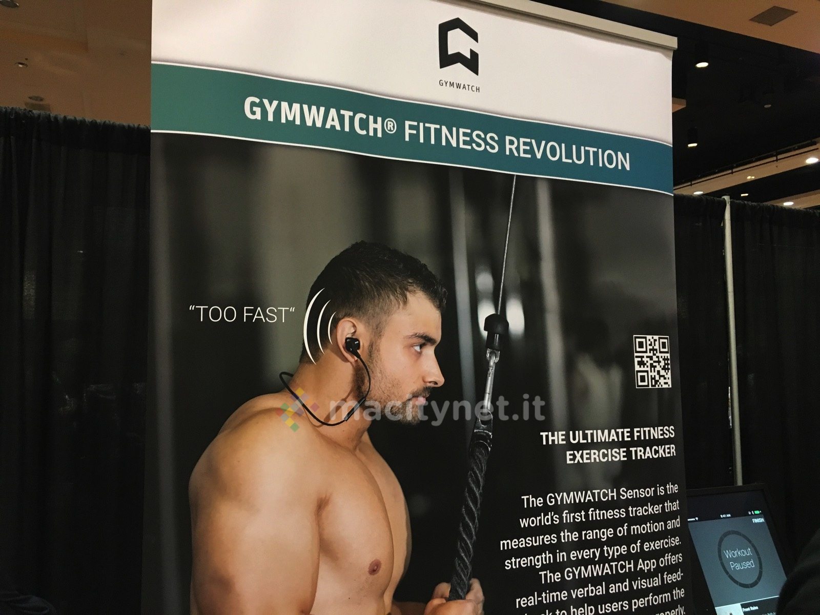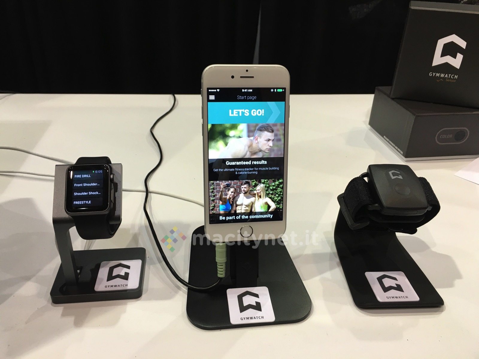 Gymwatch è il primo sensore per il fitness che trasforma Apple Watch in personal trainer. Presentato al CES 2016 Gymwatch è un dispositivo indossabile che misura con precisione il tipo di esercizio svolto e la forza messa in ogni attività fisica e che offre un feedback immediato a chi lo indossa tramite Apple Watch.
