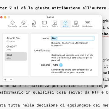 In pratica, l’attribuzione è quello che consente di creare un testo che mantiene una visibilità autoriale, più che una semplice traccia storica e notariale, dell’origine dei contenuti. Non dimentichiamo che iA Writer è uno strumento di scrittura pensato per un autore, il “suo” strumento di scrittura, e non un documento pubblico che serve per collaborare online tra più autori. La nuova funzione, insomma, è un modo per tenere traccia di quello che viene scritto e da chi e come viene riscritto, in maniera tale che sia la creatività interiore della persona ad emergere.