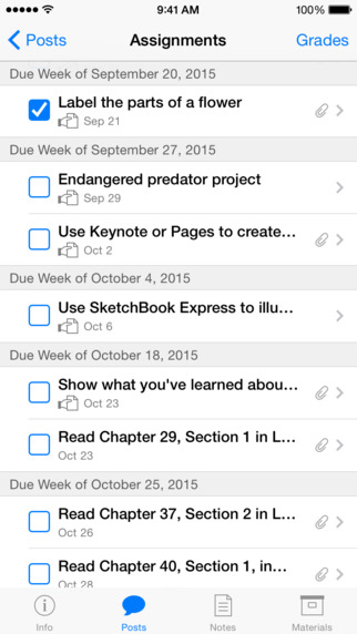 Da tempo iTunes U mette a disposizione degli insegnanti tutti gli strumenti per creare contenuti e intere lezioni all’interno dell’app e importando materiali non solo dai software di produttività Apple (Keynote, Numbers e Pages) ma anche da numerose altre app e programmi. Ora con iTunes U 3.0 anche gli studenti possono utilizzare iPhone e iPad per gestire i compiti assegnati per casa. È ora possibile includere allegati a ogni compito così come la possibilità di annotare documenti e compiti in file formato PDF.