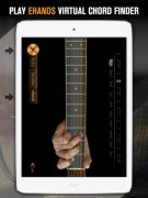 L’interfaccia vintage e colorata è immediatamente comprensibile e le gesture da utilizzare per attivare le varie funzioni sono semplici: il musicista potrà, con lo strumento a portata di mano, visualizzare note e accordi e riprodurre tracce e scale.
