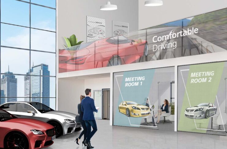 La tecnologia in questione è presentata come una vera e propria rivoluzione per il settore del digital signage e in particolare per il retail. Si tratta di una pellicola trasparente che può essere applicata su qualunque superficie in vetro grazie allo speciale materiale autoadesivo e che grazie ad un elevato grado di trasparenza (53%) promette una perfetta visibilità attraverso le superfici anche dopo la sua applicazione: una caratteristica che la rende adatta alle vetrine di store, centri commerciali, aree espositive o showroom.