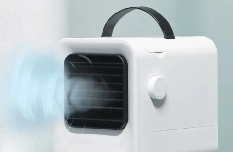 Come un ventilatore, usa una ventola con velocità regolabile tramite manopola che sposta l’aria alla velocità massima di 2,5 metri al secondo, ma è in grado di produrre aria molto più fresca grazie all’acqua che si inserisce nell’apposito serbatoio: c’è spazio per mezzo litro d’acqua, sufficienti per rinfrescare dalle 4 alle 8 ore complessive in base alla potenza selezionata.