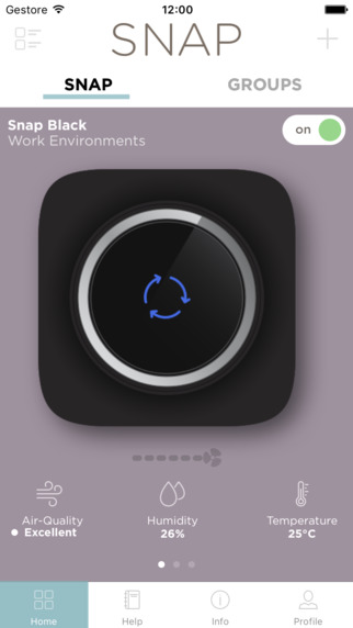 Snap, grazie a tre sensori che misurano costantemente la qualità, la temperatura e l’umidità dell’aria, attiva automaticamente il riciclo dell’aria evitando di dover aprire le finestre di casa e di conseguenza, il rischio di una relativa dispersione di calore. Una volta azionato Snap si dispone in fase di ricezione, imparando a conoscere l’ambiente domestico attraverso rilevamenti continui effettuati dai suoi sensori. In questo modo è in grado di definire e calibrare il proprio intervento su una “situazione ideale” specifica per ogni ambiente e momento della giornata.