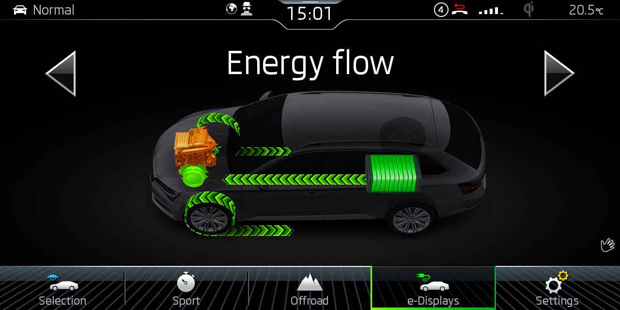 La nuova ŠKODA SUPERB iV è il primo modello di serie del Brand con tecnologia di trazione ibrida plug-in. La combinazione del quattro cilindri benzina 1.4 TSI 156 CV e di un motore elettrico da 85 kW, integrato nel cambio DSG a 6 rapporti, promette una mobilità “senza compromessi in fatto di prestazioni”. La batteria agli ioni di Litio da 37 Ah e 13 kWh consente un’autonomia in modalità elettrica fino a 56 km, mentre l’autonomia complessiva raggiunge i 930 km, con emissioni medie di CO2 di 35 g/km (ciclo WLTP).