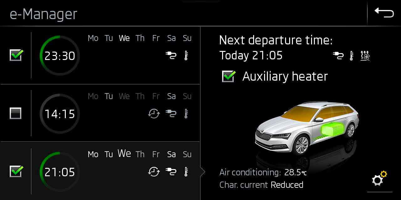 Sono parte della dotazione di serie di ogni SUPERB iV sia il cavo per la ricarica con presa domestica da 2,3 kWh, sia quello per la ricarica veloce tramite Wallbox o colonnina. Secondo il produttore in questo caso, con una potenza di ricarica di 3,6 kW sono sufficienti 3,5 ore per la ricarica completa della batteria.