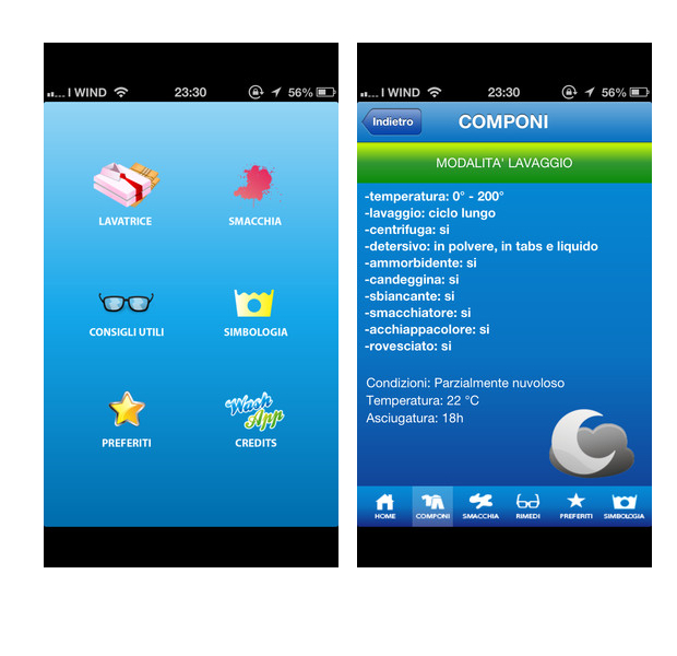 L’accuratezza dei consigli e delle indicazioni fornite da WashApp è notevole e permette di affrontare a cuor sereno anche le situazioni più complesse, come per esempio la rimozione di macchie particolarmente ostinate, il lavaggio di capi particolarmente delicati o speciali, fino ad arrivare alla gestione della lavatrice per effettuare lavaggi green, con impatto ambientale minimo ma che permettono anche di ridurre i costi. Completano le funzioni dell’app la sezione Simbologia che illustra il significato dei numeri simboli, alcuni dei quali misteriosi, riportati sulle etichette dei vestiti infine l’integrazione delle previsioni meteo locali, per evitare brutte sorprese una volta stesi i panni.