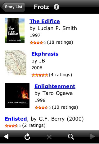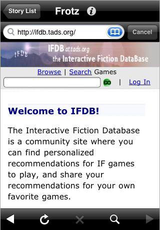 Frotz è il programma gratuito che permette di visualizzare, gestire e giocare con le avventure testuali scritte nel formato Z-Machine, realizzato appunto da Infocom per produrre decine di avventure solo testo ancora oggi ricordate per la loro originalità , ampiezza del dizionario e del parser e per la grande libertà  di azione lasciata ai giocatori. Oltre a numerosi titoli Infocom dell’epoca, in molti casi disponibili gratuitamente e direttamente integrati in Frotz per iPhone e iPod touch, il programma permette di accedere direttamente a un portale Web dove poter scaricare numerose altre avventure disponibili gratuitamente e realizzate dagli appassionati di Interactive Fiction di tutto il globo.