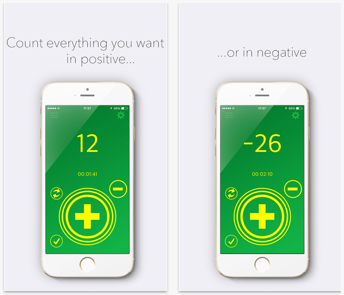 Caratteristiche: Contare sia in positivo che negativo, salvare i risultati in un database, salvare la posizione di conteggio, impostare un feedback sonoro e / o vibrazione, misurare il tempo della sessione del conteggio, condividere via mail i vostri risultati e infine di modificare i record salvati.
