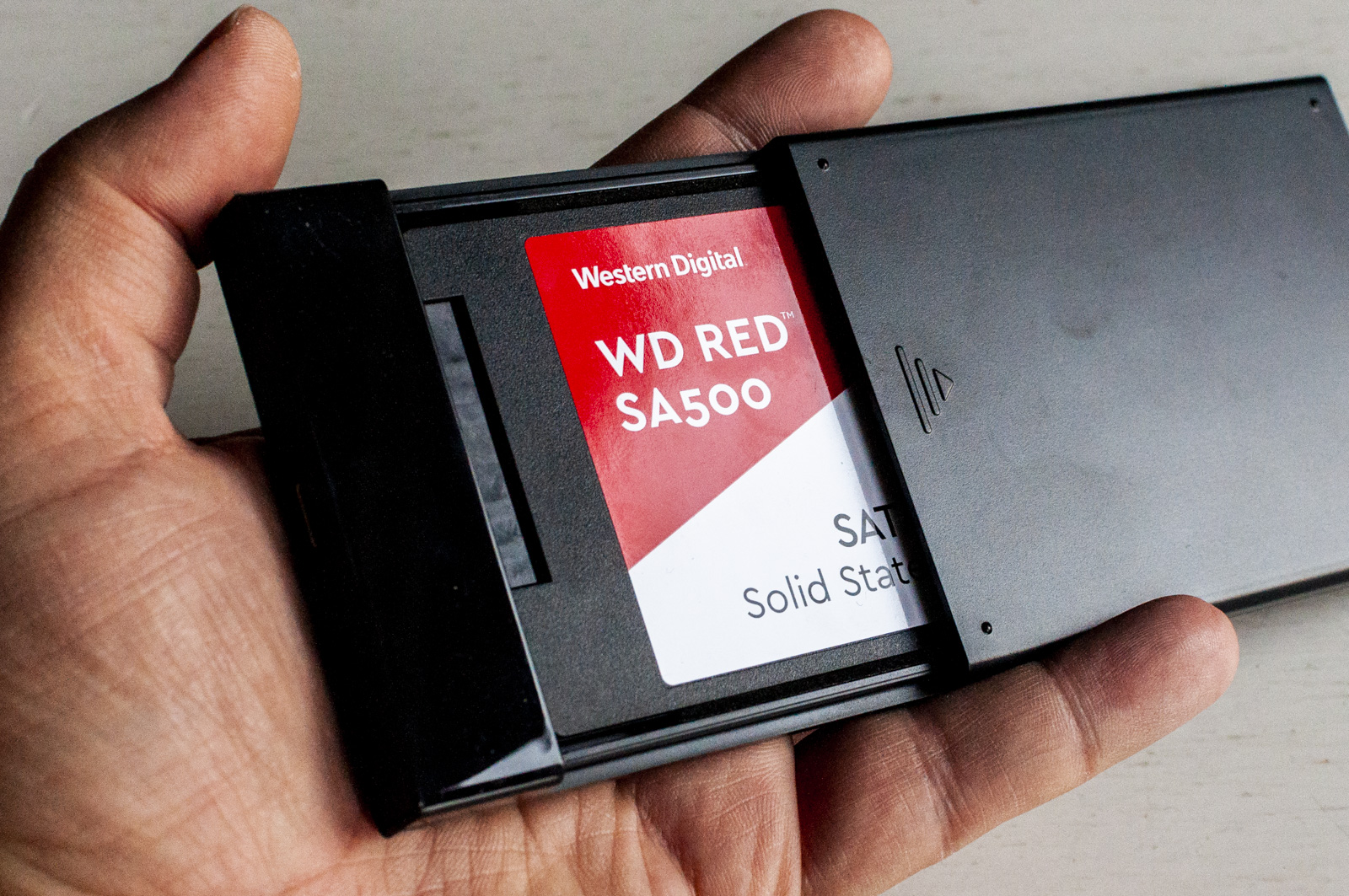 Per l’esame abbiamo optato per due soluzioni agli estremi, entrambe valide e interessanti: nella prima una memoria SSD in formato M.2 WD RED SA500 da 1 TB montata su un case Sabrent M.2 via USB 3.0, un profilo sottile, leggero che sta anche in tasca e non ingombra.