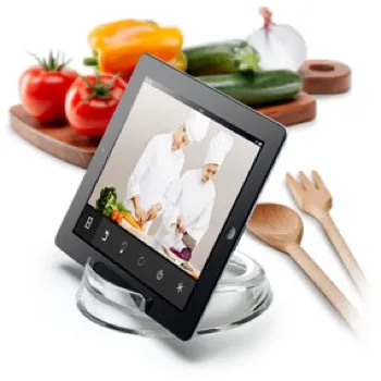 Cook Stand di Cellularline è il nuovo sostegno progettato per usare iPad in cucina. Grazie al design essenziale e curato Cook Stand si adatta allo stile di qualsiasi tipo di cucina: una volta posizionato su un ripiano permette di usare iPad lasciando libere le mani dell’utente che così può abbandonare gli ingombranti libri di ricette per consultare su schermo ebook, ricettari sottoforma di app, istruzioni e video guide disponibili su Internet per preparare nuovi gustosi piatti.