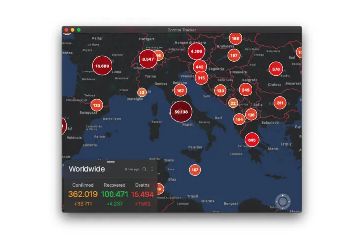 Se siete alla ricerca di app specifiche, vi segnaliamo Corona Tracker, app disponibile per Mac e dispositivi iOS (iPad e iPhone). L’applicazione in questione è open source recupera i dalla Johns-Hopkins University, che a sua volta raccoglie le informazioni ricevute da diverse fonti ufficiali, tra cui l’Organizzazione mondiale della sanità e le comptetenti autorità nazionali competenti. Con queste app è inpratica possibile avere l’equivalente della mappa interattiva della Johns-Hopkins University in un’applicazione nativa per i dispositivi della Mela.