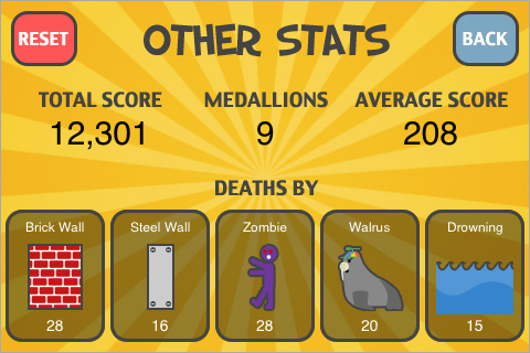 Zombi da abbattere, micidiali motoseghe che calano dall’alto che possiamo solamente schivare abbassandoci all’istante, vasche infestate da squali per cui di volta in volta conviene saltare a piè pari oppure superare miracolosamente in scivolata, pareti di mattoni che possiamo mandare in mille pezzi oppure ostacoli in metallo che possiamo solo superare. La sequenza degli ostacoli e delle minacce lascia a mala pena il tempo di pensare e così Run! diventa una corsa frenetica per i giocatori che si trovano risucchiati all’interno di questo titolo, con la sfida di resistere più a lungo. Naturalmente il risultato può essere pubblicato nella graduatoria mondiale e inviato via Twitter ai nostri amici. Al termine di ogni partita Run! offre una dettagliata statistica in cui è possibile visualizzare gli ostacoli e le minacce che più spesso hanno avuto la meglio, in questo modo è possibile correggere gli errori e migliorare le proprie prestazioni. Run! è disponibile su App Store a 79 centesimi.