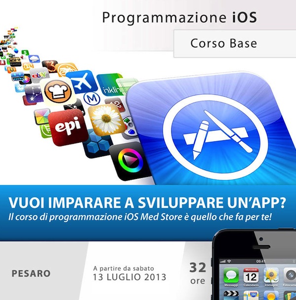 Dopo il grande successo di Perugia, Ancona e Macerata, Med Store [sponsor] all’indomani dell’annuncio del nuovissimo e completamente rivisitato iOS 7, apre le iscrizioni ai sui corsi di programmazione base per iPhone e iPad che si terranno nelle prossime settimane ad Ascoli Piceno e Pesaro.