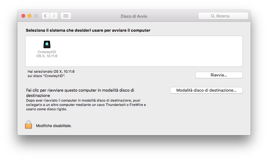 Noi in particolare abbiamo voluto utilizzare il disco creato come unità d’avvio per un iMac da 27” di fine 2012: per questo modello di iMac (come per tutti gli ultimi da allora, senza lettore ottico) non è previsto il cambio di disco rigido con una unità flash (come è invece più facile con il modello di iMac precedente). Di conseguenza, utilizzare un disco esterno come unità d’avvio è l’unica scelta per rendere la macchina più prestante, fattore che è possibile tramite il pannello Disco di avvio dentro Preferenze di sistema (il disco deve essere collegato prima che accendiate il Mac).