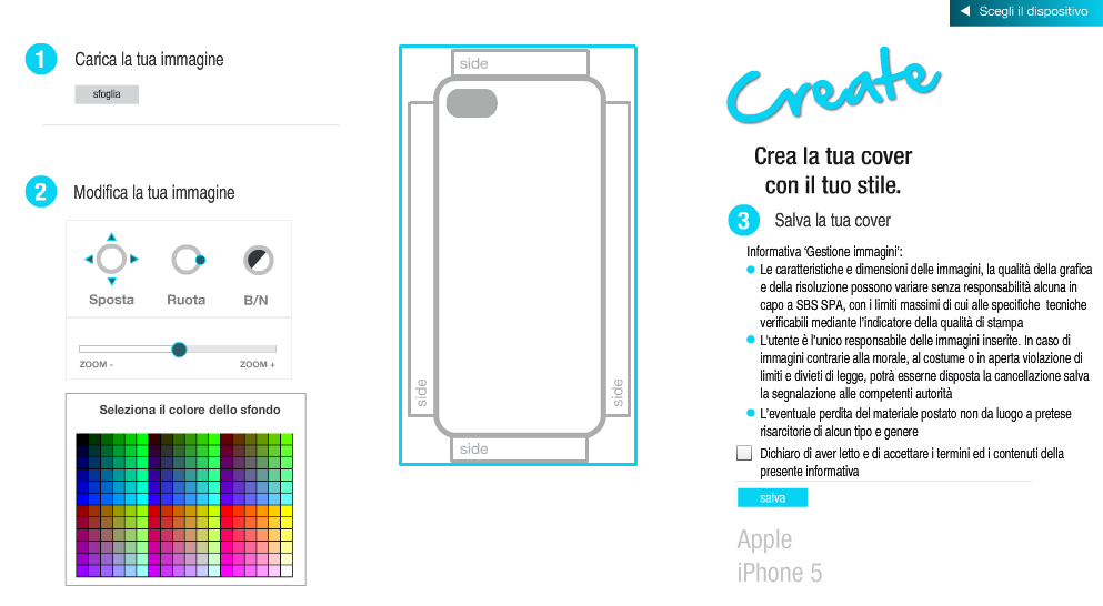 Per chi è alla ricerca di un accessorio personalizzato che racconta qualcosa di sé o per chi desidera regalare una cover unica ad un amico o alla fidanzata, la Custom Cover di SBS può essere una valida alternativa: basterà visitare il sito dell’azienda, accedere alla sezione dello Store per poi riuscire facilmente a scegliere e creare la cover che si desidera con la foto preferita o una composizione di immagini, dediche e messaggi.