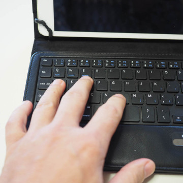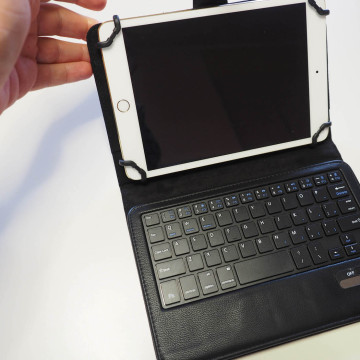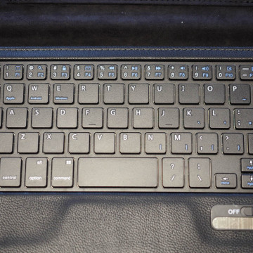 La tastiera, che si attiva semplicemente con un interruttore per poi abbinarla nel sistema operativo, è di buona qualità. Forse non al livello di alcune tastiere di grandi marchi (ma i cui accessori costano 4 volte quello di iClever), ma sufficientemente buona per scrivere con precisione e velocità. I tasti non sono in gomma ma in plastica rigida e hanno una risposta ferma; sono infatti controllati da molle e non da una guarnizione in plastica. Usare la tastiera rende molto più facile scrivere mail, testo chilometrico, navigare, inserire password e così via. Agevola ancora di più il fatto che la cover sostiene il tablet in una posizione ergonomicamente corretta, anche se dovremo sempre avere un supporto piano su cui collocarla. Per la sua particolare conformazione, sarà infatti molto difficile scrivere appoggiando iPad mini sulle gambe.