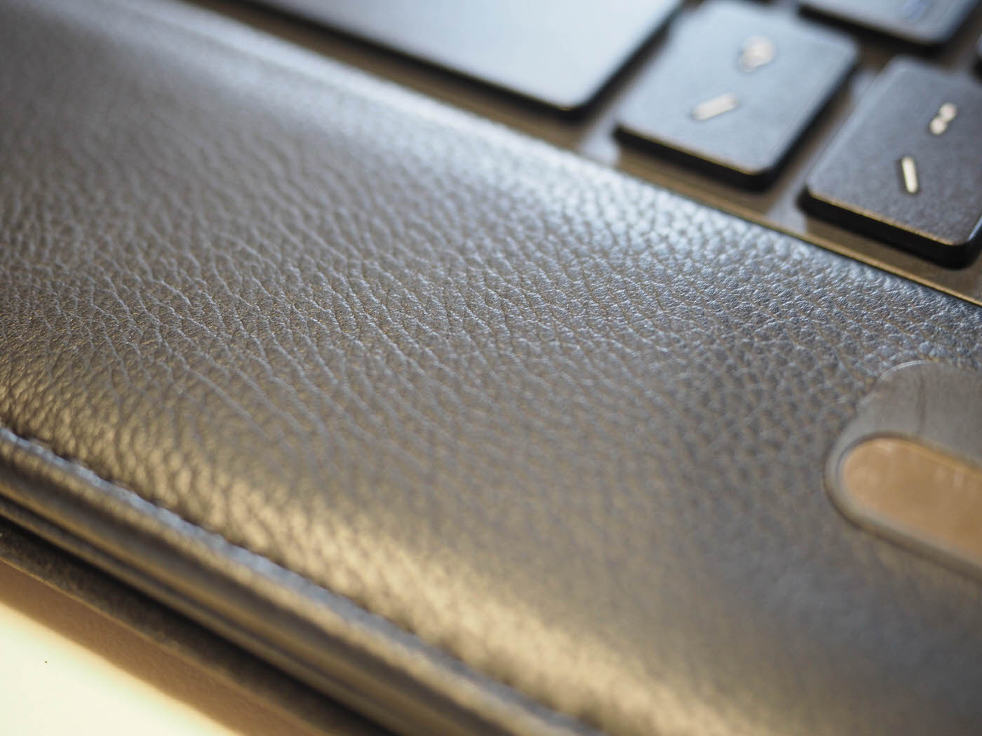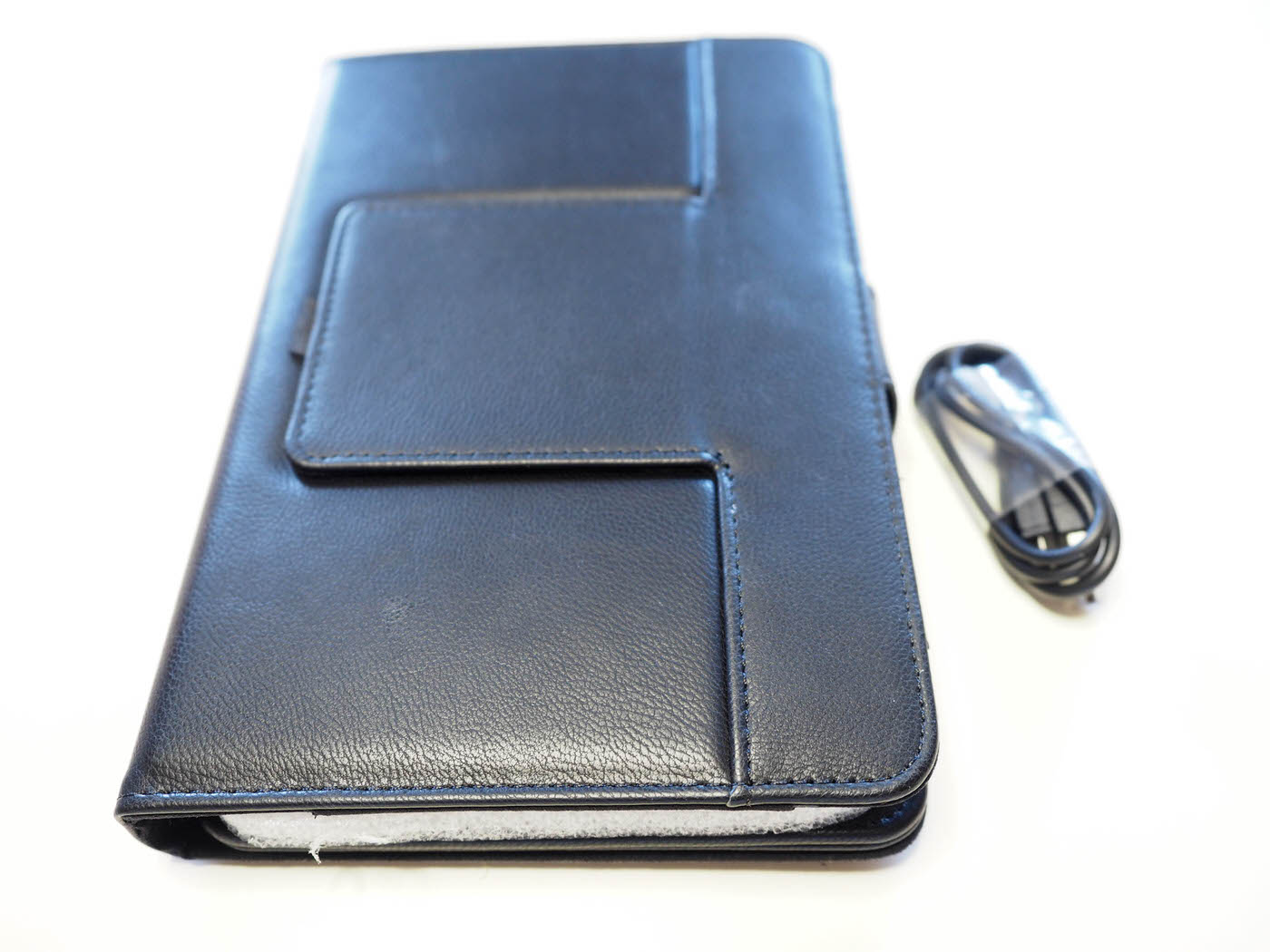 L’accessorio arriva a casa in una scatola abbastanza anonima all’interno della quale troviamo la custodia, la tastiera e un cavo Micro-USB. Parliamo di custodia e di tastiera perchè si tratta, anche fisicamente, di due oggetti separati anche se studiati per andare sempre insieme. La tastiera è una Bluetooth QWERTY (senza accenti ma la cosa costituisce un problema da poco, come diremo) che resta in posizione grazie a dei magneti. La custodia, abbastanza massiccia, non bellissima ma ben costruita e realizzata in piacevole pelle sintetica, è molto protettiva, è infatti realizzata con inserti rigidi che proteggono gli angoli e i bordi del tablet. Ha anche una linguetta di chiusura e una aletta sul retro che potremo aprire per usarla come supporto per scrittura.