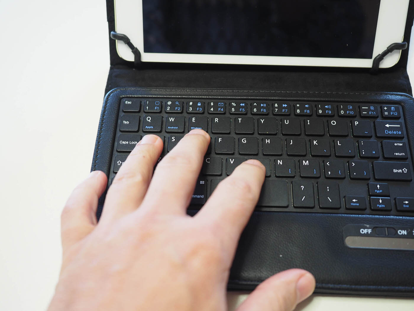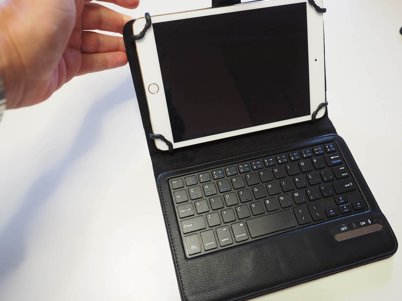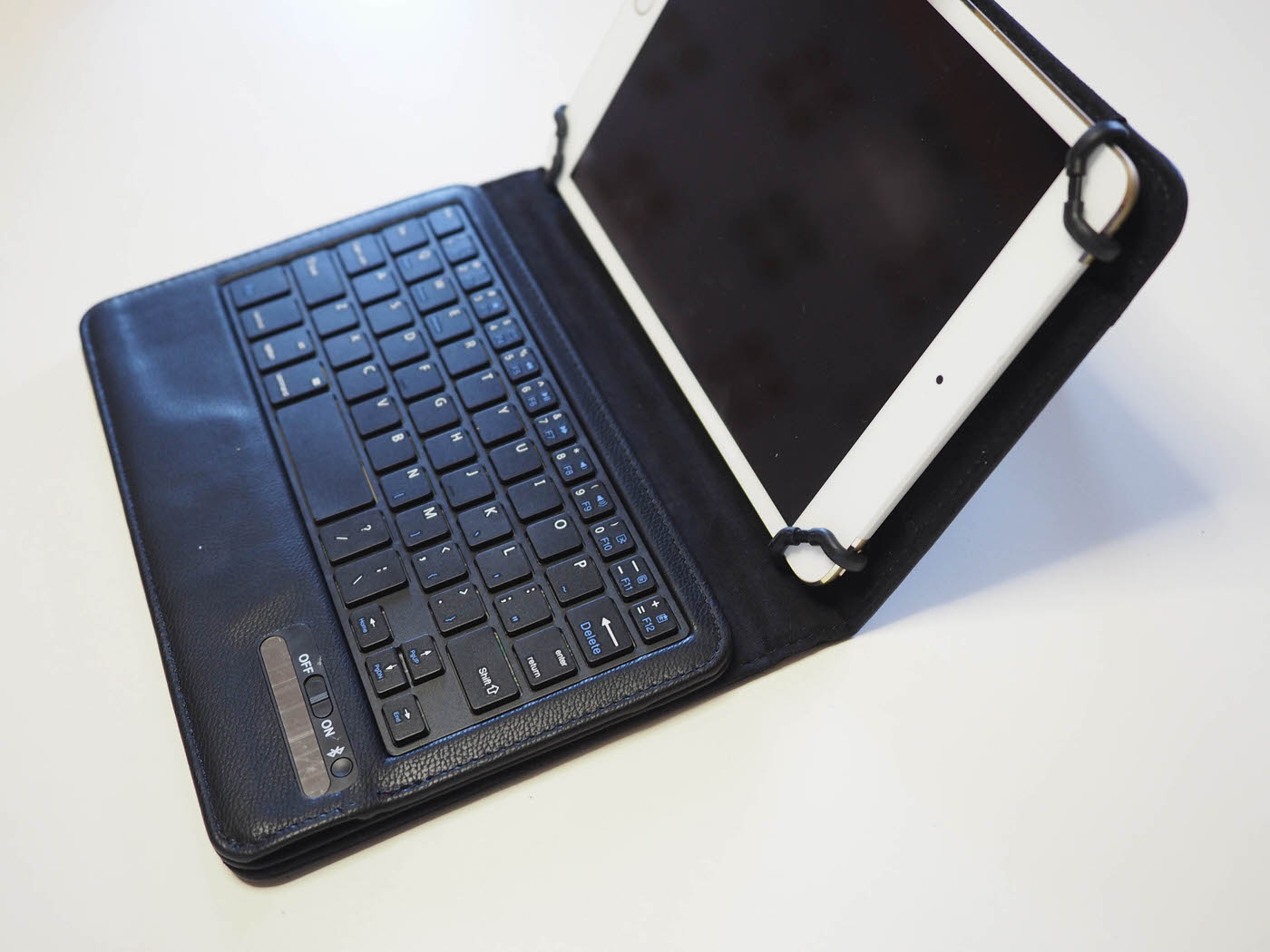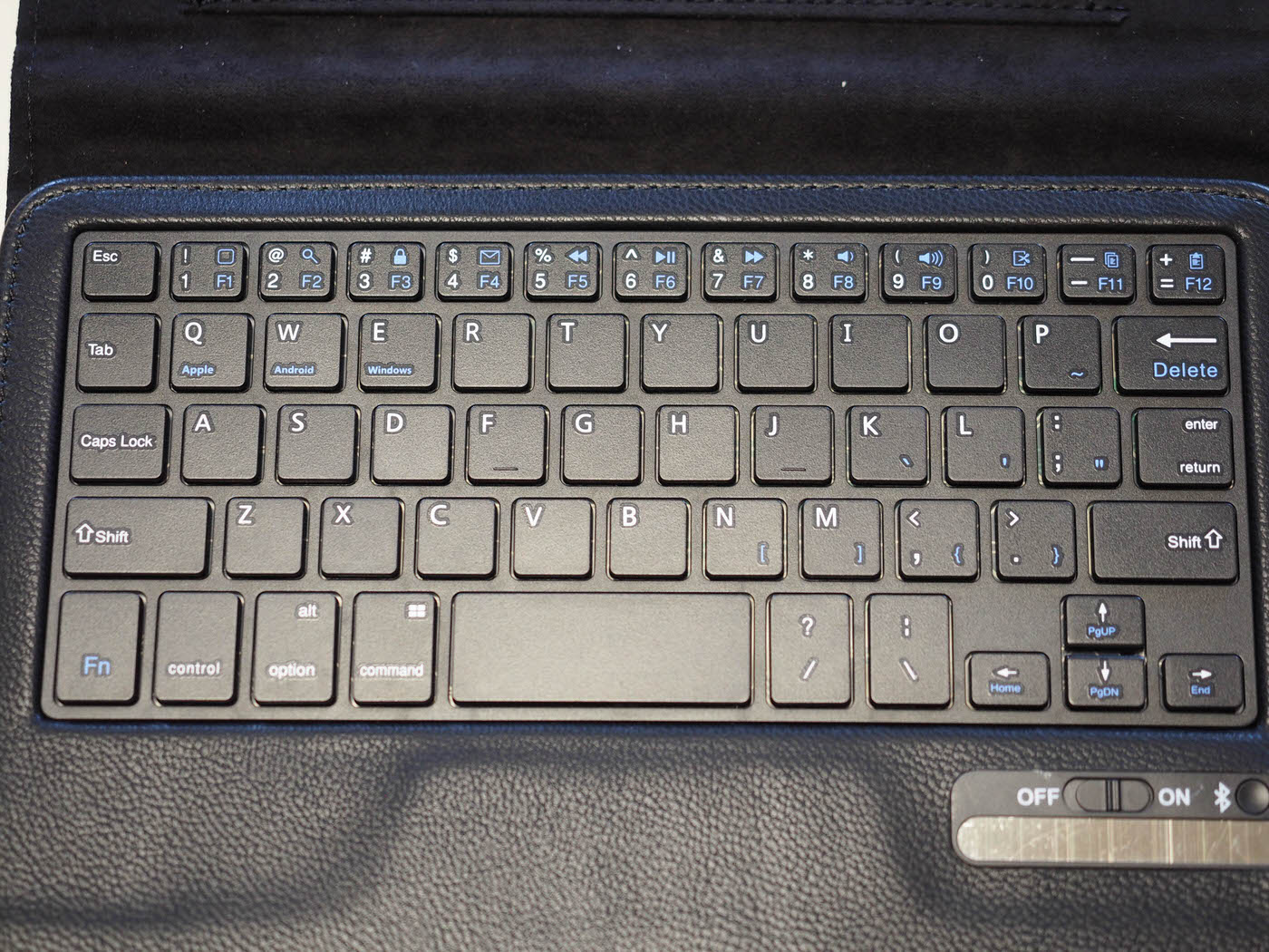 La tastiera, che si attiva semplicemente con un interruttore per poi abbinarla nel sistema operativo, è di buona qualità. Forse non al livello di alcune tastiere di grandi marchi (ma i cui accessori costano 4 volte quello di iClever), ma sufficientemente buona per scrivere con precisione e velocità. I tasti non sono in gomma ma in plastica rigida e hanno una risposta ferma; sono infatti controllati da molle e non da una guarnizione in plastica. Usare la tastiera rende molto più facile scrivere mail, testo chilometrico, navigare, inserire password e così via. Agevola ancora di più il fatto che la cover sostiene il tablet in una posizione ergonomicamente corretta, anche se dovremo sempre avere un supporto piano su cui collocarla. Per la sua particolare conformazione, sarà infatti molto difficile scrivere appoggiando iPad mini sulle gambe.