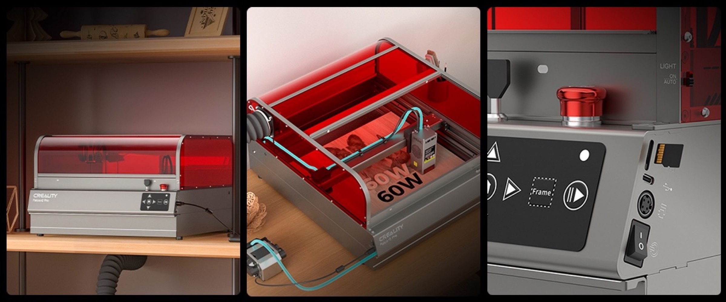 Si tratta di una delle più potenti macchine per taglio e incisione laser attualmente in commercio. Date le sue dimensioni (66 x 57 x 33 centimetri circa, pesa 19 Kg) è anche particolarmente adatta a piccoli spazi, potendo così essere facilmente usata in casa o in piccoli laboratori.