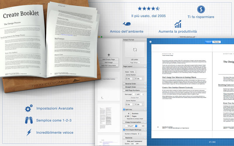 Create Booklet è un’applicazione per Mac appositamente progettata da TheKeptPromise per la creazione e la stampa di libretti. Nata oltre 10 anni fa come servizio di stampa PDF gratuito, in passato aveva diverse configurazioni impostabili, ma quasi nessuno le usava perché erano complicate da trovare.