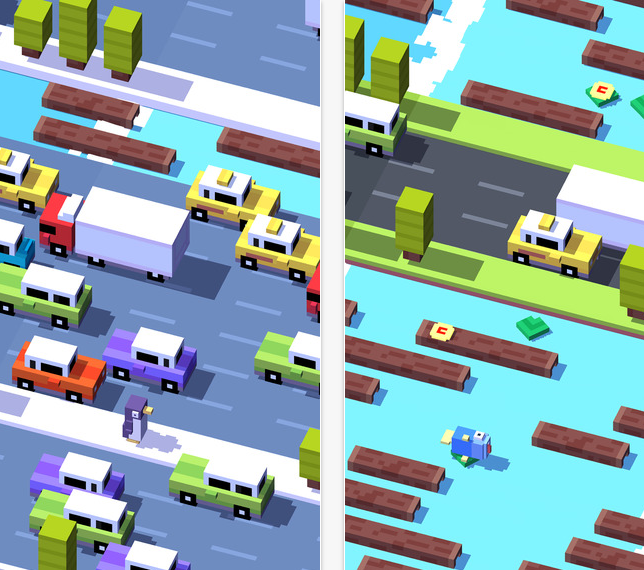 Di tanto in tanto appare in App Store un gioco talmente tanto semplice nelle meccaniche, dal quale è quasi impossibile allontanarsi. Successe per Flappy Bird e potrebbe succedere, ancora una volta, con Crossy Road. Si tratta di un endless game che, nella sostanza, richiama il classico Frog. Scopo del gioco, infatti, è quello di far attraversare la strada ad una gallina, una mucca, un gatto, un cane e mille altri simpatici animali da sbloccare.
