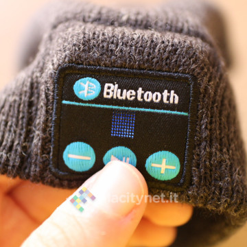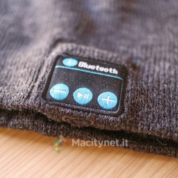 La cuffietta più grande è accompagnata da una etichetta che mostra la dicitura Bluetooth e la funzione dei tre pulsanti incorporati: è infatti possibile avviare o mettere in pausa un brano, saltare le tracce avanti e indietro o regolare il volume con la semplice pressione dei tre tasti. Anche qui, quando si re-inseriscono le cuffie, va prestata particolare attenzione a far combaciare quanto più possibile i pulsanti al loro rispettivo indicatore. Sul bordino inferiore c’è poi una apertura per l’ingresso microUSB, utile per ricaricare le cuffie senza doverle rimuovere dal cappello.