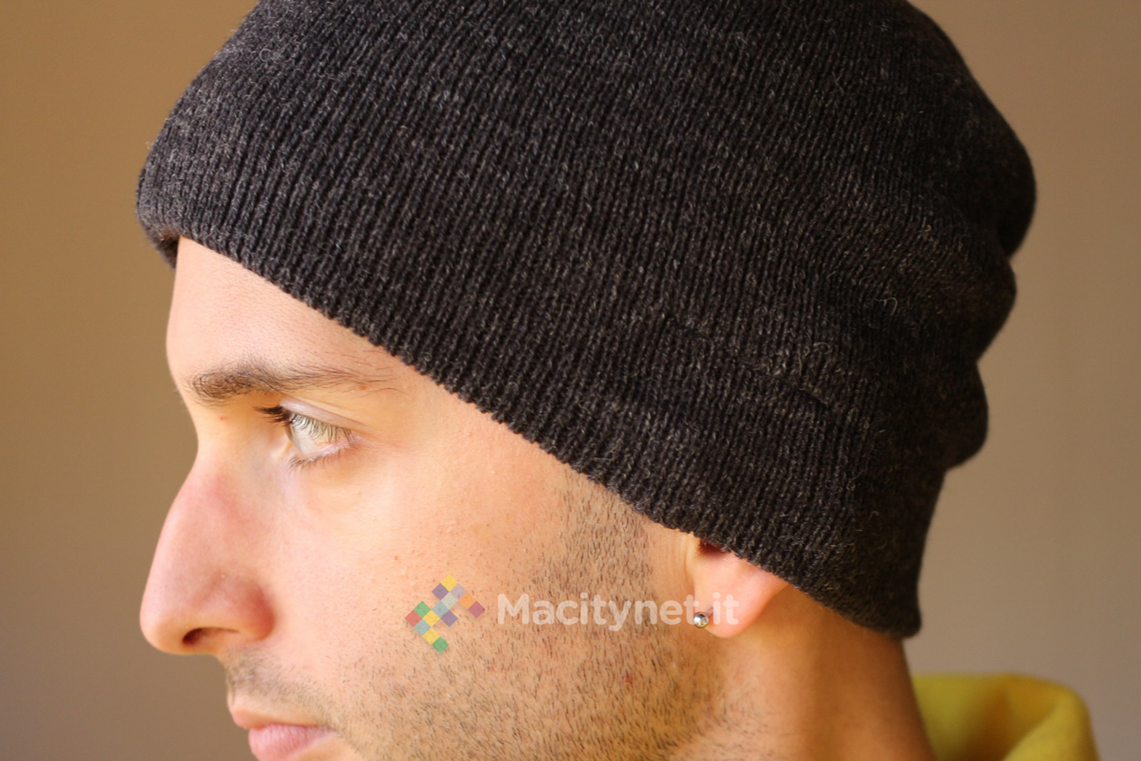 Sono di Andoer, produttore cinese di cui abbiamo già messo alla prova diverse categorie di accessori nel corso degli anni e che, anche in questo caso, è riuscito a combinare qualità e tecnologia ad un prezzo del tutto concorrenziale. Il cappello, almeno a guardarlo, è del tutto simile a qualsiasi altra cuffia di lana. E’ abbastanza spesso (circa mezzo centimetro), non appena lo si indossa ci si accorge di quanto è effettivamente morbido e confortevole il tessuto. La lana è sufficientemente elastica per potersi adattare praticamente a qualsiasi dimensione: nel nostro caso calza molto bene anche se, essendo di un’unica taglia, probabilmente potrà risultare un po’ largo ad una testa più piccola come quella di un bambino o un adolescente.