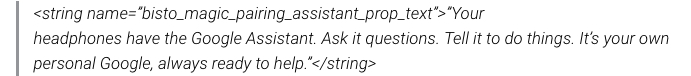 Una stringa sembra però fare luce sul mistero e indicare ciò che Bisto potrebbe essere: “Le cuffie hanno il Google Assistant. Fai domande. Digli cosa fare. È il tuo Google personale, sempre pronto ad aiutarti” si legge.