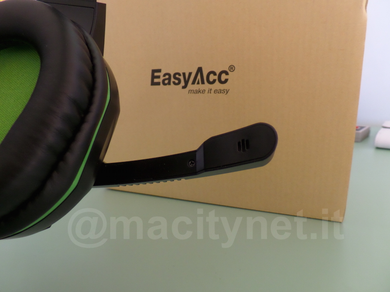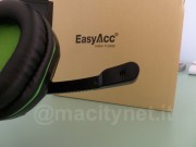 I materiali plastici di cui si compone quasi interamente la cuffia risultano robusti, anche se in mano restituiscono una sensazione di prodotto realizzato con un occhio attento al risparmio. In effetti, le cuffie gaming EasyAcc costano appena 26,99 euro e non era possibile aspettarsi un touch and feel paragonabile a prodotti di alto livello. Indossate sono però molto comode, soprattutto grazie alla generosa grandezza dei padiglioni auricolari, che accolgono completamente le orecchie, senza alcun fastidio, anche se i padiglioni auricolari a contatto con la pelle in sessioni lunghe possono risultare un po’ fastidiose per il calore che generano. Il microfono attaccato al padiglione auricolare sinistro è completamente in plastica e può essere facilmente reclinato sull’archetto, così da essere ripiegato quando non si usa.