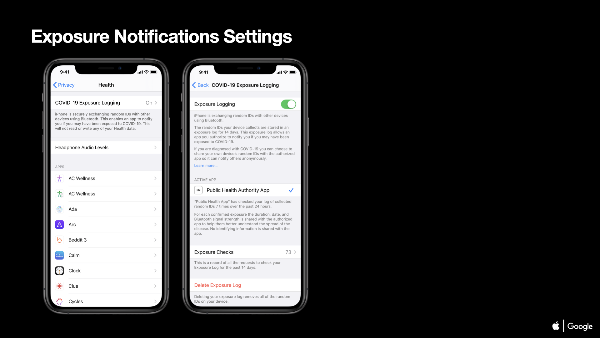 Apple e Google riferiscono che le nuove risorse sono progettate per aiutare sviluppatori che lavorano per le autorità sanitarie competenti a creare applicazioni per la notifica di esposizioni (la vicinanza con persone che hanno contratto il COVID-19). Negli esempi, sono mostrati concept per la messa in servizio delle API “Exposure Notification”, così come concept di interfacce che mostrano cosa mostrare in caso di positività nei contatti e l’attivazione del sistema di notifiche.