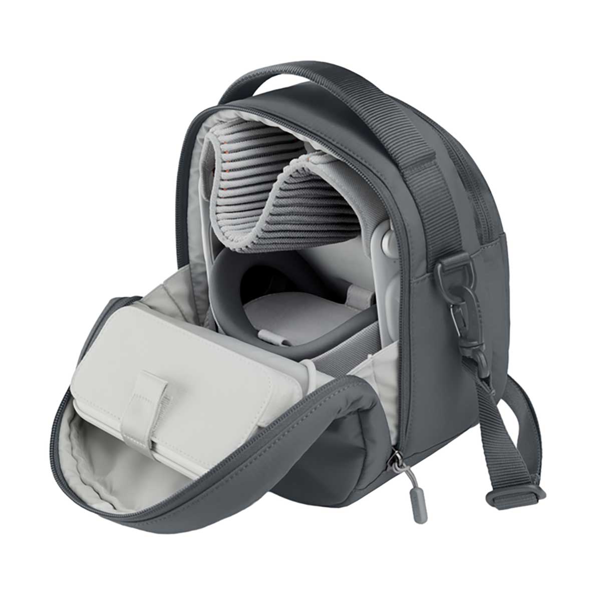 La borsa da viaggio (99,95$ negli USA) è pensata per proteggere Apple Vision Pro quando si trasporta il visore in giro. È compatta, leggera e può essere trasportata con la maniglia o sfruttando bretelline regolabili a spalla o a tracolla. Il design con scompartimenti multipli permette di separare Vision Pro e accessori – quali la batteria, l’alimentatore o le fasce per la testa – tutti organizzati e facilmente accessibili. È progettata (qui i dettagli) con un lembo interno e una base imbottita per offrire ulteriore protezione. La zip anteriore con cerniera rende facile l’accesso, e una tasca aggiuntive permette di avere a disposizione spazio extra per conservare oggetti personali (o un Airtag). La Travel Bag è realizzata con tessuto leggero e “ad alte prestazioni” in termini di durata ed offerta nella colorazione space gray “sempre attuale”.